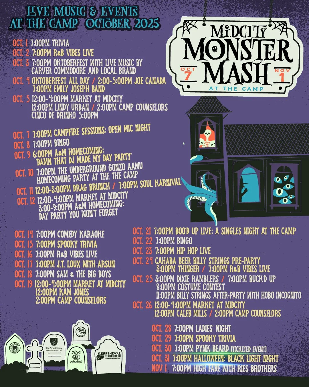 Sitting at the gateway of MidCity District, The Camp is Huntsville’s coolest outdoor destination. What is The Camp?! The Camp is a fully functioning bar and restaurant with live music and entertainment every night. The Camp is also home to Greenroom Coffee Shop and Tamarind Island Grille, two exceptional dining and beverage experiences that utilize The Camp grounds for dining and enjoyment.